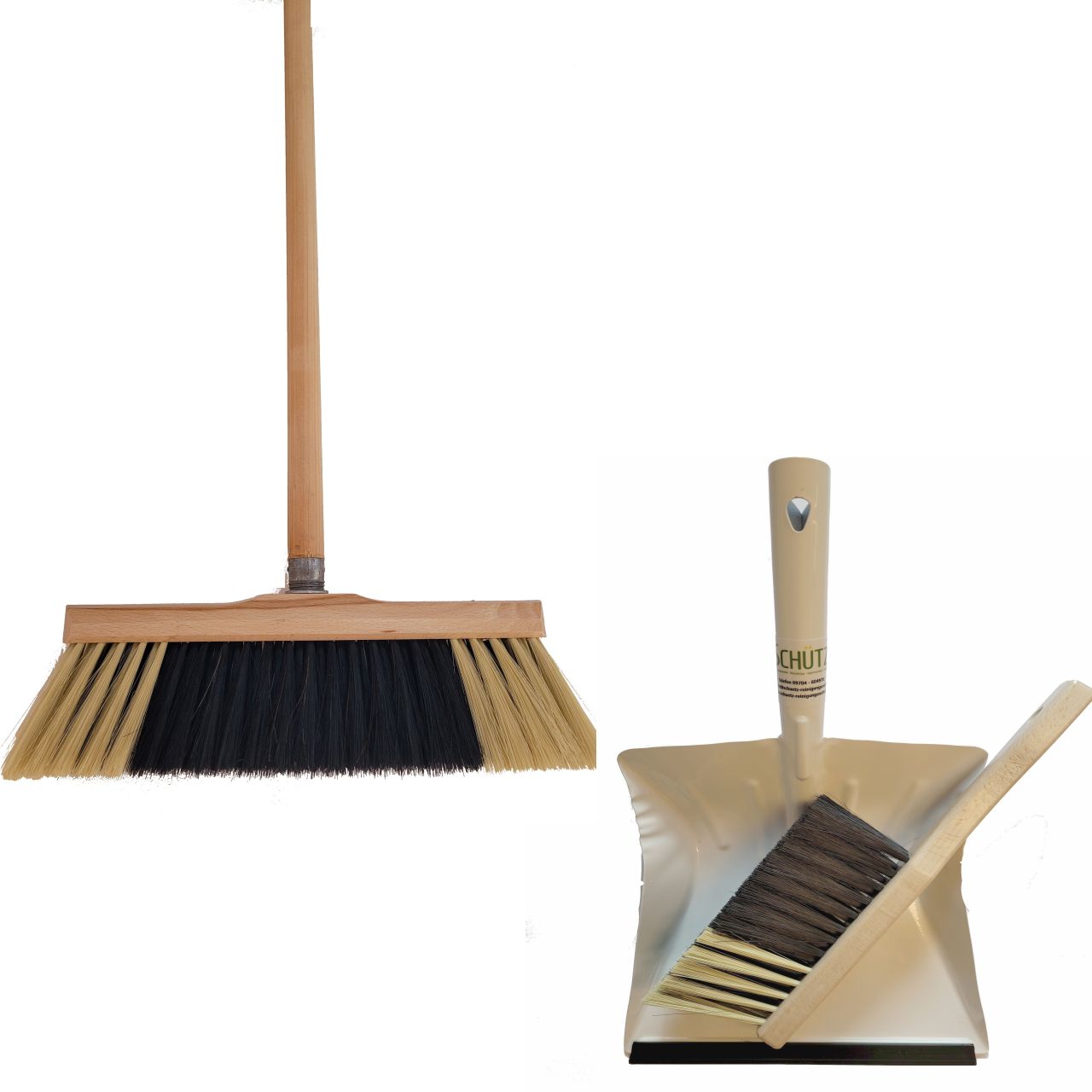 KehrSET 4tlg. Blechschaufel wß. +Handfeger+Besen Naturhaarmisch. +Holzstiel